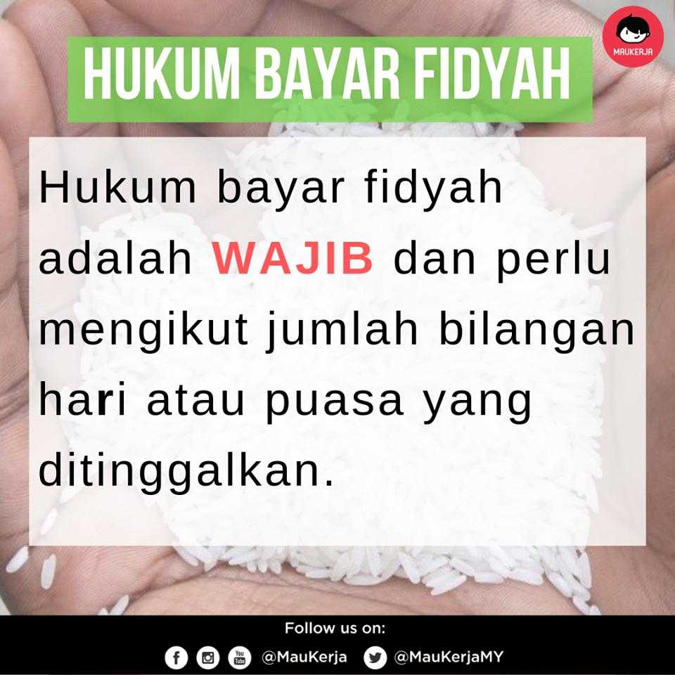 Cara bayar fidyah dan pengiraannya di malaysia. Dalam surat al baqarah ayah 184, terdapat penjelasan mengenai siapa saja yang diperbolehkan untuk tidak berpuasa di bulan suci ramadan karena situasi tertentu. Zakat fidyah merupakan zakat yang dikenakan kepada sesiapa yang meninggalkan puasa pada tahun sebelumnya dan puasa yang ditinggalkan itu tidak digantikan. Bersesuaian dengan teknologi terkini dan perintah kawalan pergerakan (pkp), majlis agama islam negeri johor (maij) memutuskan bahawa pembayaran fidyah akan dilakukan secara online. Biasanya perkara ini menjadi tanda tanya kaum wanita, bagaimana cara bayar fidyah puasa?