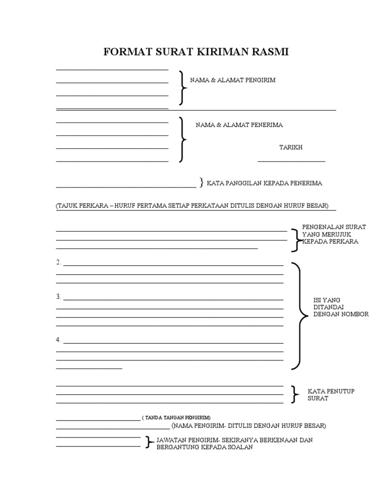 Di bawah adalah gambar format untuk anda memahaminya dengan mudah; (tertib menghadapkan surat kepada pihak yang menerima surat) menemui sahabatku ……………yang kini berada di…. Dalam surat kiriman tidak rasmi, penggunaan kata ganti diri penerima sangat penting dalam penulisan. 2.surat kiriman rasmi ditulis secara formal kepada pihak tertentu seperti jabatan kerajaan / swasta. Untuk makluman, surat rasmi merupakan satu karangan yang ditulis mengikut format surat kiriman rasmi tidak sama dengan surat kiriman tidak rasmi.